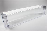 Unteres Regal in der Kühlschranktür, oft als Milchablage genutzt. Das Türregal kann einfach ohne Werkzeug ausgetauscht werden.